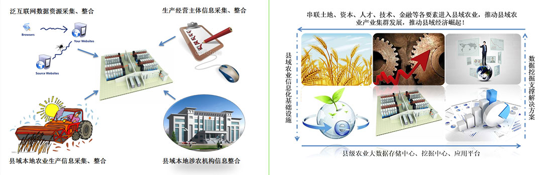 通过对区域农业资源禀赋、信息化程度的调研和分析,定义区域农业信息体系,设计区域农业信息的采集系统、存储平台、挖掘机制和展示平台。